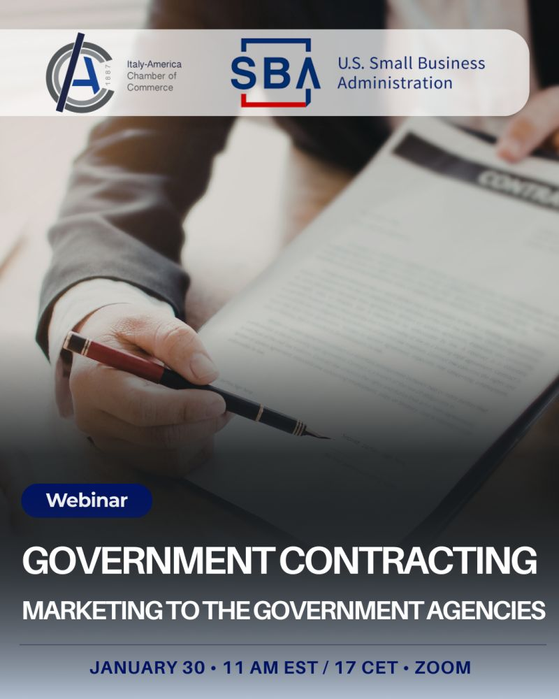 La Italian American Chamber of Commerce (IACC), in collaborazione con la U.S. Small Business Administration (SBA), promuove un webinar formativo dedicato alle imprese interessate ad accedere al mercato degli appalti pubblici negli Stati Uniti.