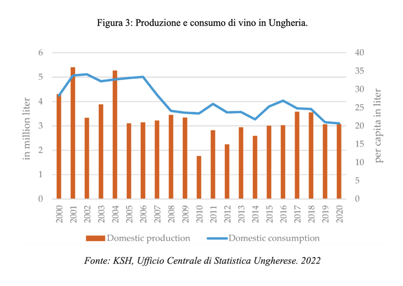 Poiché la produzione vinicola ungherese è concentrata prevalentemente su vini di fascia medio-bassa, per soddisfare la domanda interna di prodotti di fascia medio-alta e premium viene soddisfatta in larga misura attraverso le importazioni.
